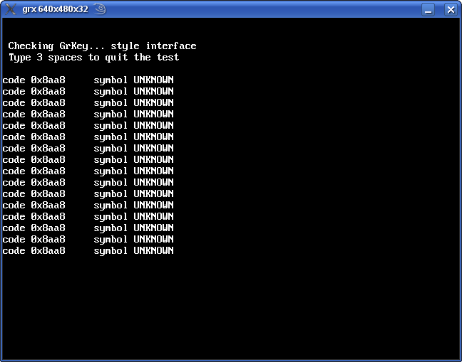 I thought that the problem was with my application, but after checking the grx examples, I found out that the grx examples xmousetest and xkeys aren't recognizing what keys are being presses. The keyboard event is recognized, but the key itslef is garbage...